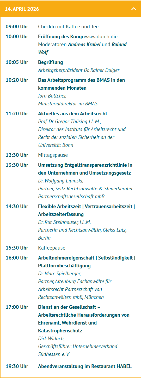 Im Jahr 2026 findet der 21. Arbeitsrechtskongress unter der Schirmherrschaft der BDA mit Hochkarätigen Referenten statt. Der Kongress wird in Hybridform durchgeführt