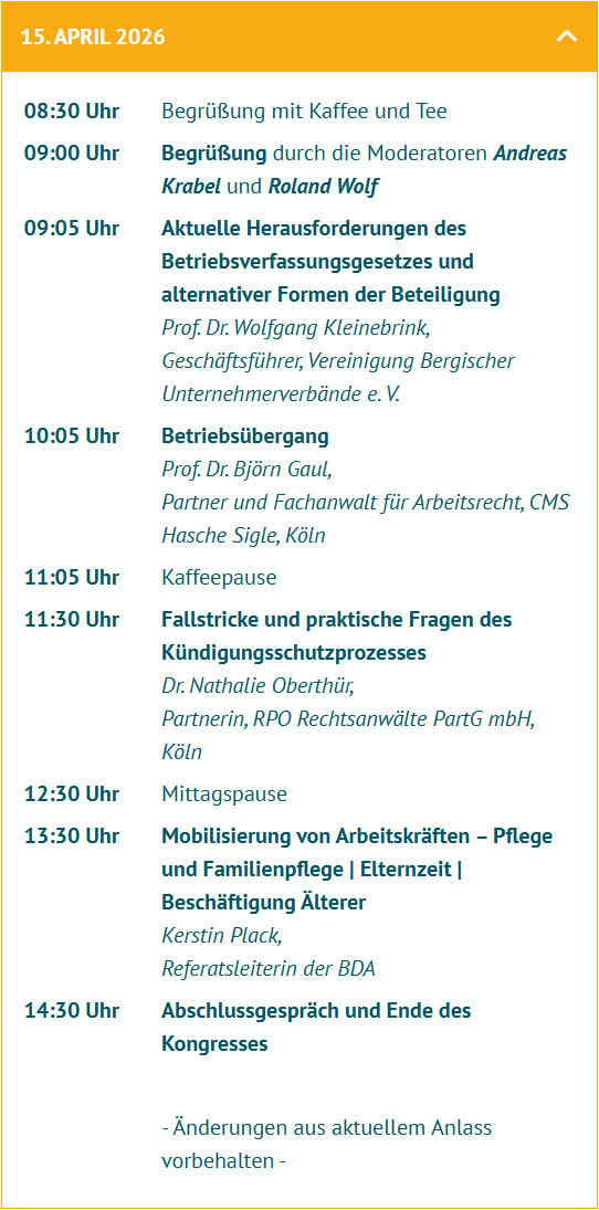 Im Jahr 2026 findet der 21. Arbeitsrechtskongress unter der Schirmherrschaft der BDA mit Hochkarätigen Referenten statt. Der Kongress wird in Hybridform durchgeführt