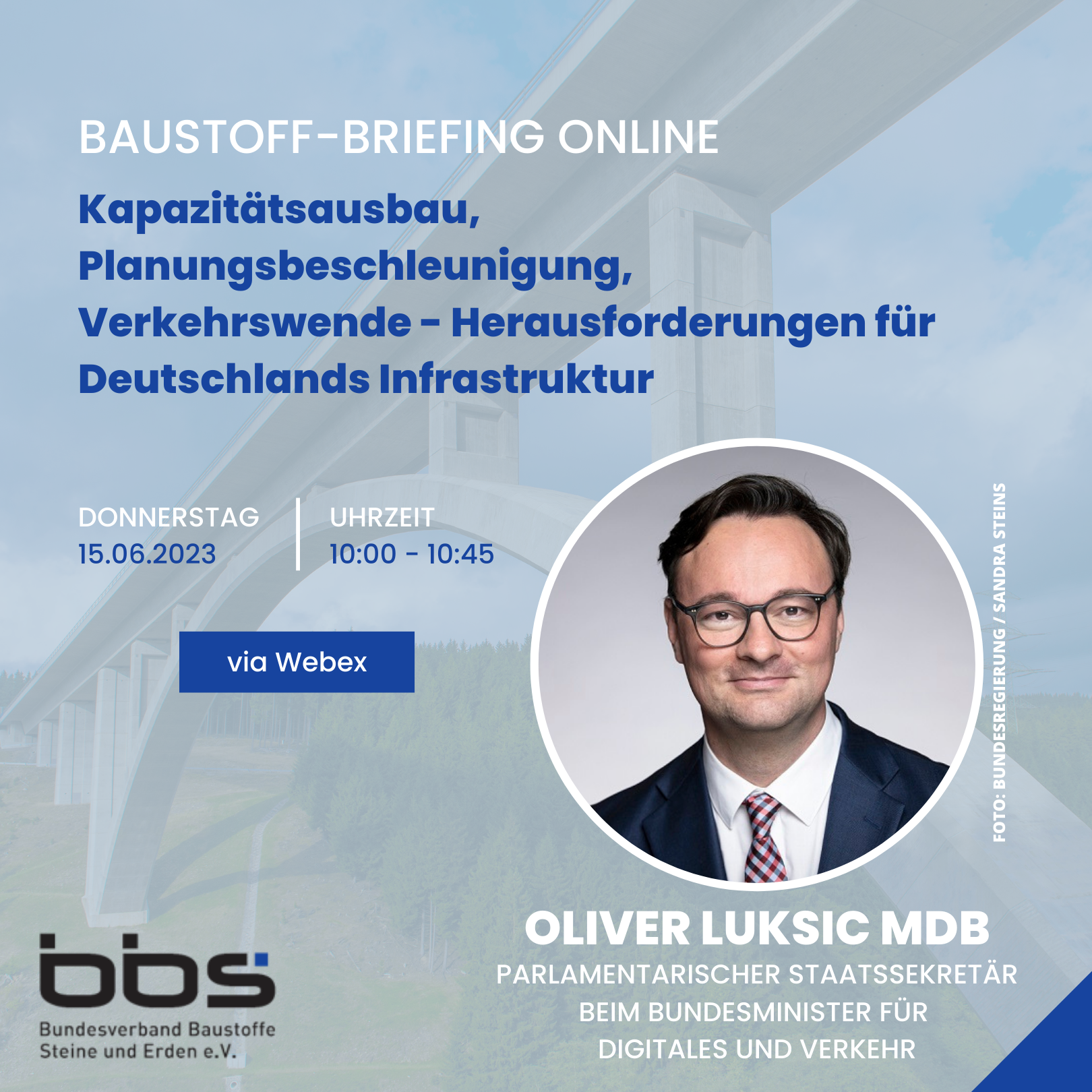 Der Bundesverband Baustoffe – Steine und Erden e.V. lädt ein, die Herausforderungen unserer Branche in rund 45 Minuten mit einem hochkarätigen politischen Gast zu diskutieren. Freuen Sie sich auf einen Dialog mit dem