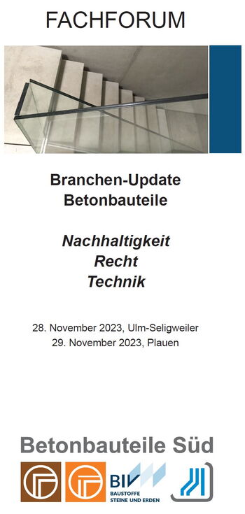 Im Anschluss stellen wir Ihnen aktuelle Gesetze und Urteile unserer Branche vor. Außerdem werden wir über das neue Merkblatt Sichtbetonfertigteile sowie die neue DIN 1045 mit Regelungen für Betonbauteile berichten.